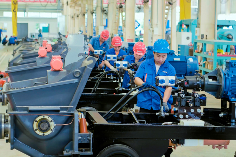 HBT-12D型泵送式濕噴機(jī),是我公司結(jié)合混凝土泵送式輸送和稀薄流輸送的優(yōu)點(diǎn),研制開發(fā)的液壓泵送式濕噴機(jī)系列產(chǎn)品之一。該機(jī)采用液壓傳動(dòng),以泵送方式將砼輸送至一定距離 或至噴頭處,再用壓縮空氣將砼噴射到支護(hù)面上。同時(shí),在噴頭處加入適量速凝劑與砼混合,速凝劑的添加量通過計(jì)量泵調(diào)節(jié)。采用三泵結(jié)構(gòu),換向速度快,脈沖···