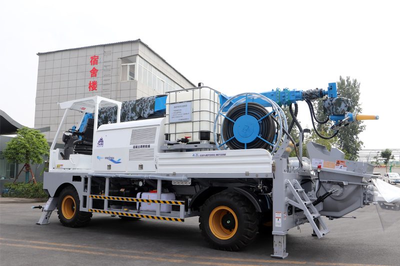 全液壓伸縮噴射臂適用于長(zhǎng)距離、大高度濕噴場(chǎng)地。前置的機(jī)械臂相較汽車底盤噴射機(jī)組,具有臂架噴射范圍更大,噴射盲區(qū)小的特點(diǎn)。