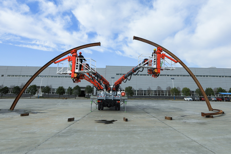 智能拱架臺車是我公司研發(fā)的一款具備拱架安裝、錨桿網(wǎng)片安裝,鋼筋網(wǎng)鋪設(shè)、輔助打鉆、裝藥、處理欠挖作業(yè)、輔助質(zhì)量檢測、風(fēng)水管安裝、缺陷修補等多功能,多用途的新型隧道施工設(shè)備。采用新的立架工藝,可單次進行2-3榀預(yù)制焊接拱架的安裝,真正解決傳統(tǒng)人工立架施工時間過長,人員勞動強度大,危險性高的問題,滿足機械化快速施工的要求。